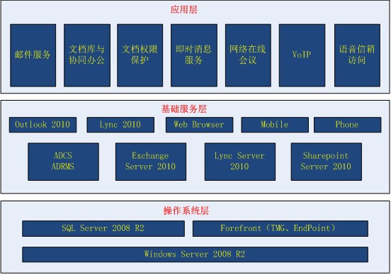 平臺(tái)的安全性也得到了全方位的防護(hù),操作系統(tǒng)層面的防病毒由Forefront Endpoint Protection提供,Exchange、Sharepoint、Lync的應(yīng)用防護(hù)、過濾有Forefront protection提供,邊緣的應(yīng)用程序發(fā)布由Forefront Threat Management Gateway防火墻提供,保證了整個(gè)平臺(tái)從操作系統(tǒng)、應(yīng)用到接入的全面安全。